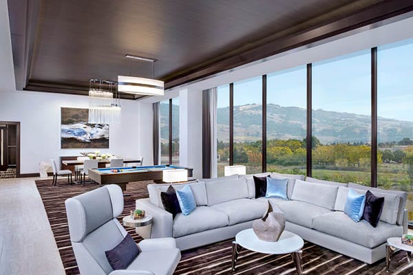 There are 200 rooms on property in total; 16 of which are suites. Of the suites that we have to offer, our 5 Bay California Suite is certainly the definition of lavish. At 2,600 square feet, you could theoretically fit a ranch home inside! The California Suite is equipped with many features from billiard tables to butler pantry furnishings to luxuriously comfortable king sized beds, spacious jetted tubs and more! However, there is one feature you’d be hard pressed to find anywhere else… Each restroom has been fitted with Mirror TVs! No more running to the living room to catch your favorite shows in the middle of getting ready for the evening!