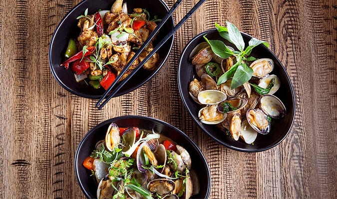 Một sự kết hợp đa dạng giữa Ẩm thực Nhật Bản và Đông Á, cung cấp nhiều lựa chọn hải sản tươi sống bao gồm cả sushi cuộn sáng tạo. Kết hợp các món ăn truyền thống của Trung Quốc như Cua rang muối & tiêu, Tôm hùm gừng và Ngao húng quế đậu đen với cocktail thủ công độc đáo của chúng tôi hoặc rượu vang của Hạt Sonoma.